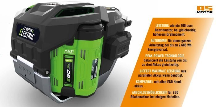 De AS-Motor Electric accu’s zijn compatibel met alle professionele handheld apparaten van EGO Powertools.