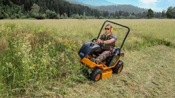 De vierwielige zitmaaier met meer bodemvrijheid voor gebruik op steile hellingen en lastig terrein
