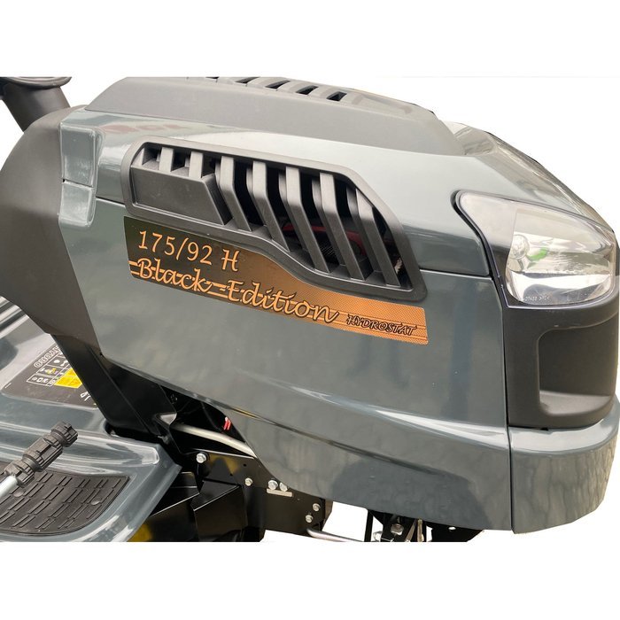 De rijmaaier, gazontractor Black Edition 175/92 H is uitgerust met een uitschuifbaar veld.