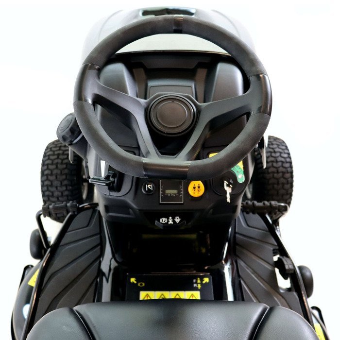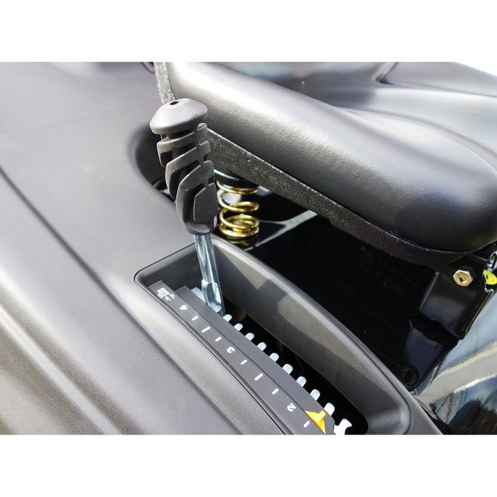 Met de comfortfuncties van de Black Edition zitmaaier kunt u zich comfortabel aan het maaien maken. Zo kunt u de veerbelaste zitting zonder gereedschap aanpassen en optimaal aanpassen aan uw hoogte. Het speciaal ontwikkelde gaspedaal, ook wel het gaspedaal genoemd, kunt u eenvoudig schakelen tussen voorwaarts en omgekeerd schakelen om snel te schalen. Hiermee kunt u de snelheid continu regelen met het drukafhankelijke pedaal. Met dit Top Black Edition-model kunt u de snelheid constant houden door middel van een cruise control.