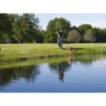 Drijft op een luchtkussen en maait gemakkelijk alle kanten op.