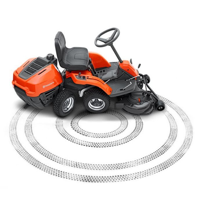 De achterasbesturing en het maaidek aan de voorzijde zorgen voor een goed overzicht van de werkplek en een paar geluids- en emissies.