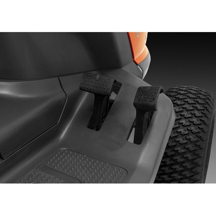 Snelheid en richtingsregeling door pedaalgestuurde hydrostatische versnellingen. Scheidbandjes voor naar voren en achteruit.