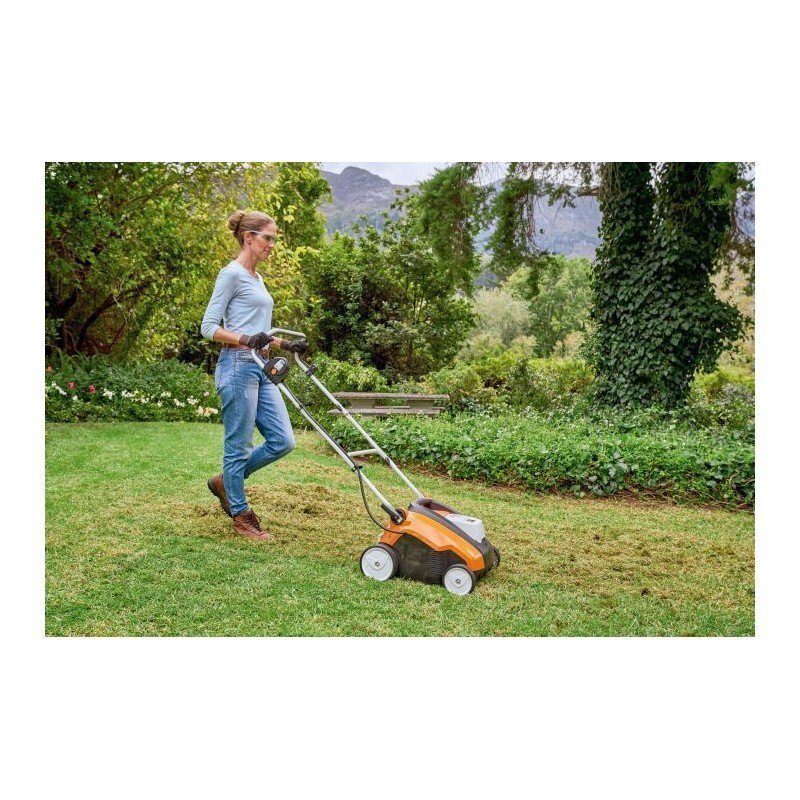 De Sthil RLA240 verticuteermachine is een krachtige en handige accuverticuteermachine voor kleine tot grote tuinen. Dankzij de maaibreedte van 34 cm kunt u uw gazon in kleine ruimtes beluchten