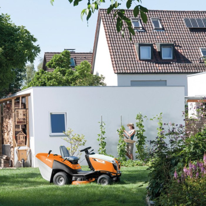 De wendbare STIHL zitmaaier RT 5097 ondersteunt u bij het onderhoud van uitgebreide percelen. Met zijn hoge rijcomfort en overzichtelijke bedieningselementen biedt deze zitmaaier geavanceerde technologie voor moeiteloos werken. Hiermee kunt u de comfortabele en hangende zitting van de gedraaide tractor aanpassen aan uw maat zonder uw gereedschap te gebruiken. Dankzij de eenvoudige aanpassing van de maaihoogte en de elektromagnetische meskoppeling bereikt u een even hoge maaikracht en kwalitatief overtuigende resultaten voor het in- en uitschakelen van de maaier. Het vangbesturingssysteem aan beide zijden van de maaier helpt de grasbladen zo volledig mogelijk over de gehele maaibreedte te vangen en het gras aan de messen te voeren. De handige 1-pedaalaandrijving helpt u zodat u uzelf nog wendbaarder kunt manoeuvreren. Met slechts één beweging kunt u de rijrichting van de gazontracttract van voorwaartse versnelling in de achteruitversnelling veranderen. Dankzij de praktische sabelgreep kan de 250-liter grasvanger ook moeiteloos leeg worden van de bestuurdersstoel. De plastic grasafsnijdug wordt bewaard in het ontwerp van de graafmachineschep en is zeer eenvoudig schoon te maken.