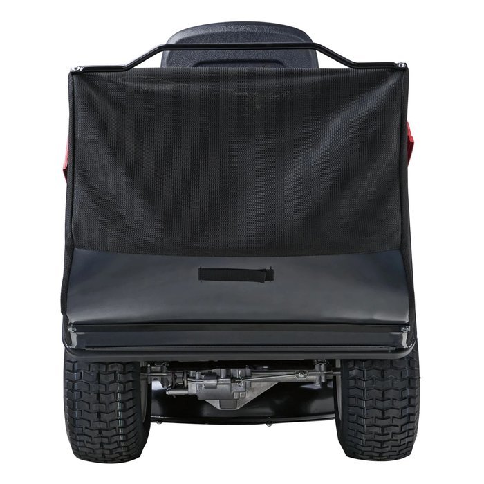 Grote grasvangertas van 150 liter kan van de bestuurdersstoel worden afgevoerd.